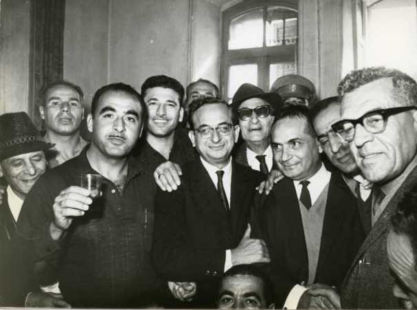 A.C à la municipalité Campagne électorale du parti Rafi pour la municipalité de Jérusalem, avec, au milieu, aux côtés d’A.C, Itshak Navon.