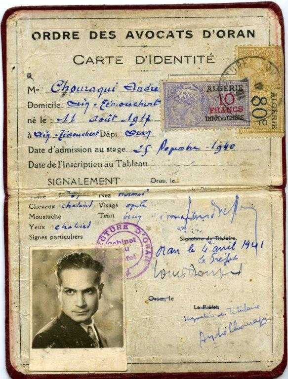 Carte d_’identité de l_’ordre des avocats à Oran 1941