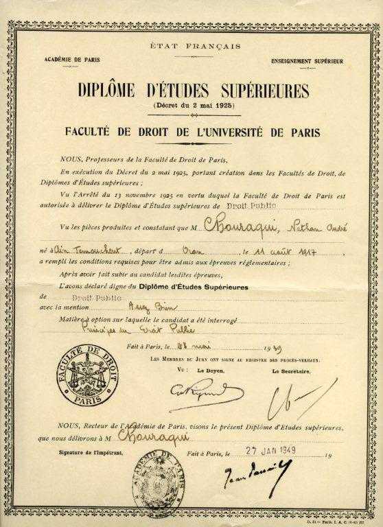Diplôme de Droit Public, faculté de Droit de Paris 1949