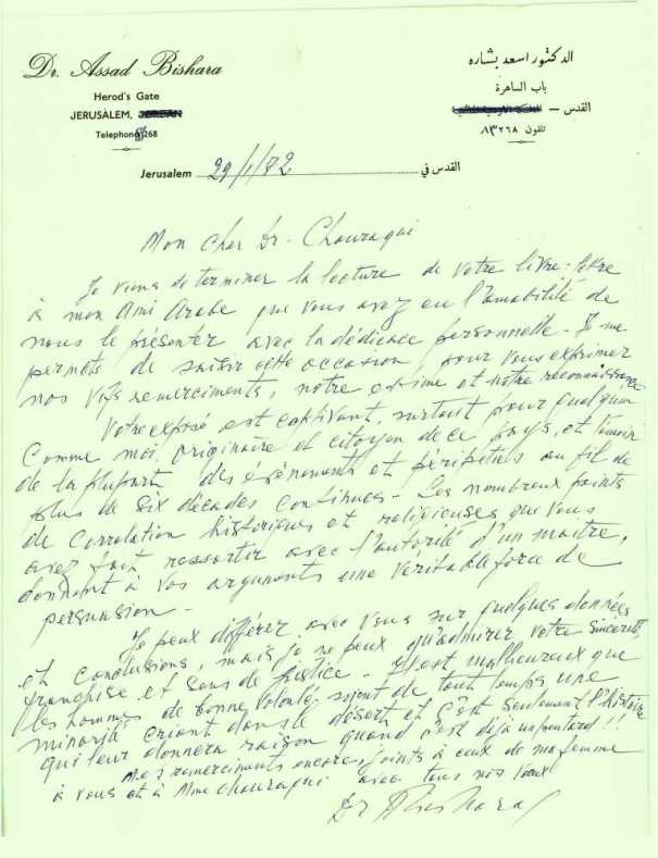 Lettre du Dr Assad Bishara palestinien de Beïtlekhem